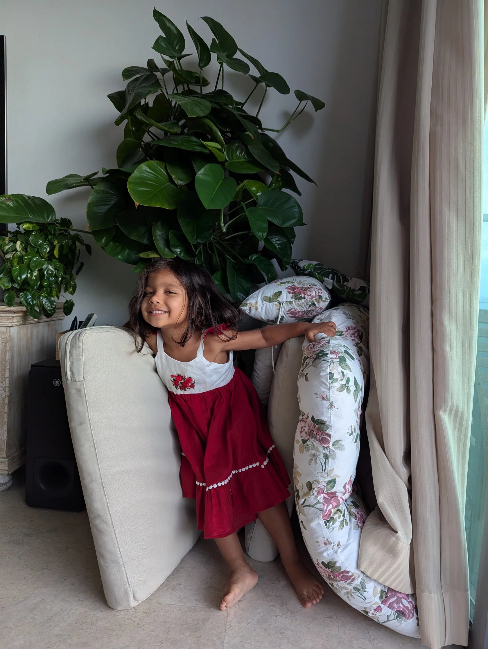 The Red & White Floral Dress is where timeless elegance meets simplicity. The floral embroidery on the chest flows flawlessly into a vibrant red skirt, making this dress look absolutely stunning. Make every special moment even more memorable with this dress, from birthday celebrations to festive gatherings