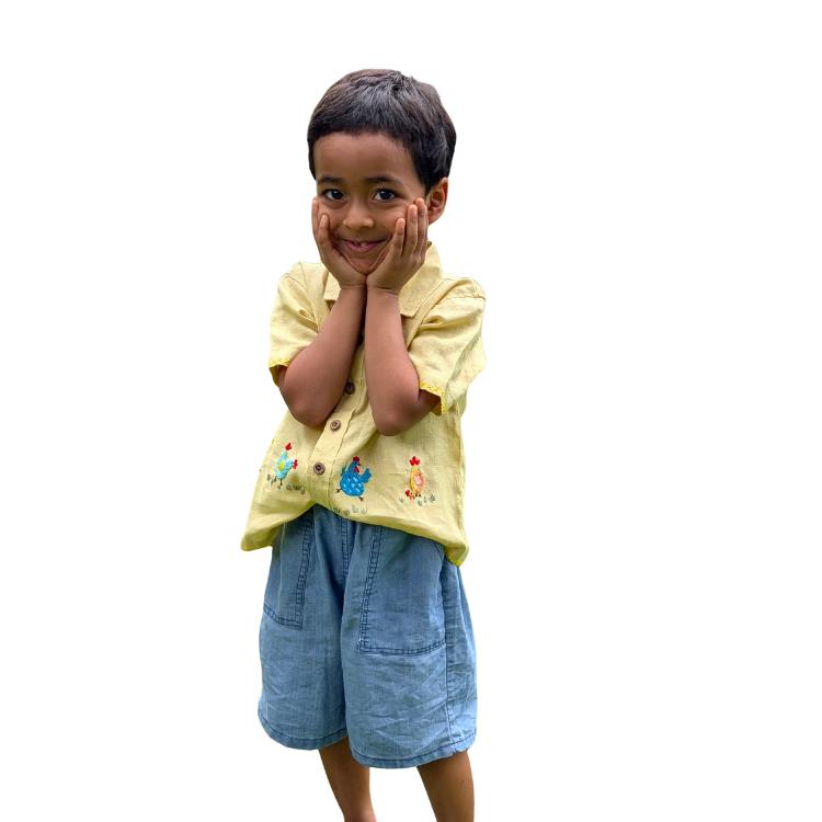 A fun statement piece for your little explorers. The Crazy Chicken Shirt is crafted from 100% pure linen for breathability, comfort, and a gentle feel on the skin. Featuring colorful hand-embroidered chickens on a cheerful yellow fabric, it’s a playful yet stylish choice to pair with jeans or shorts for an easygoing outfit.
