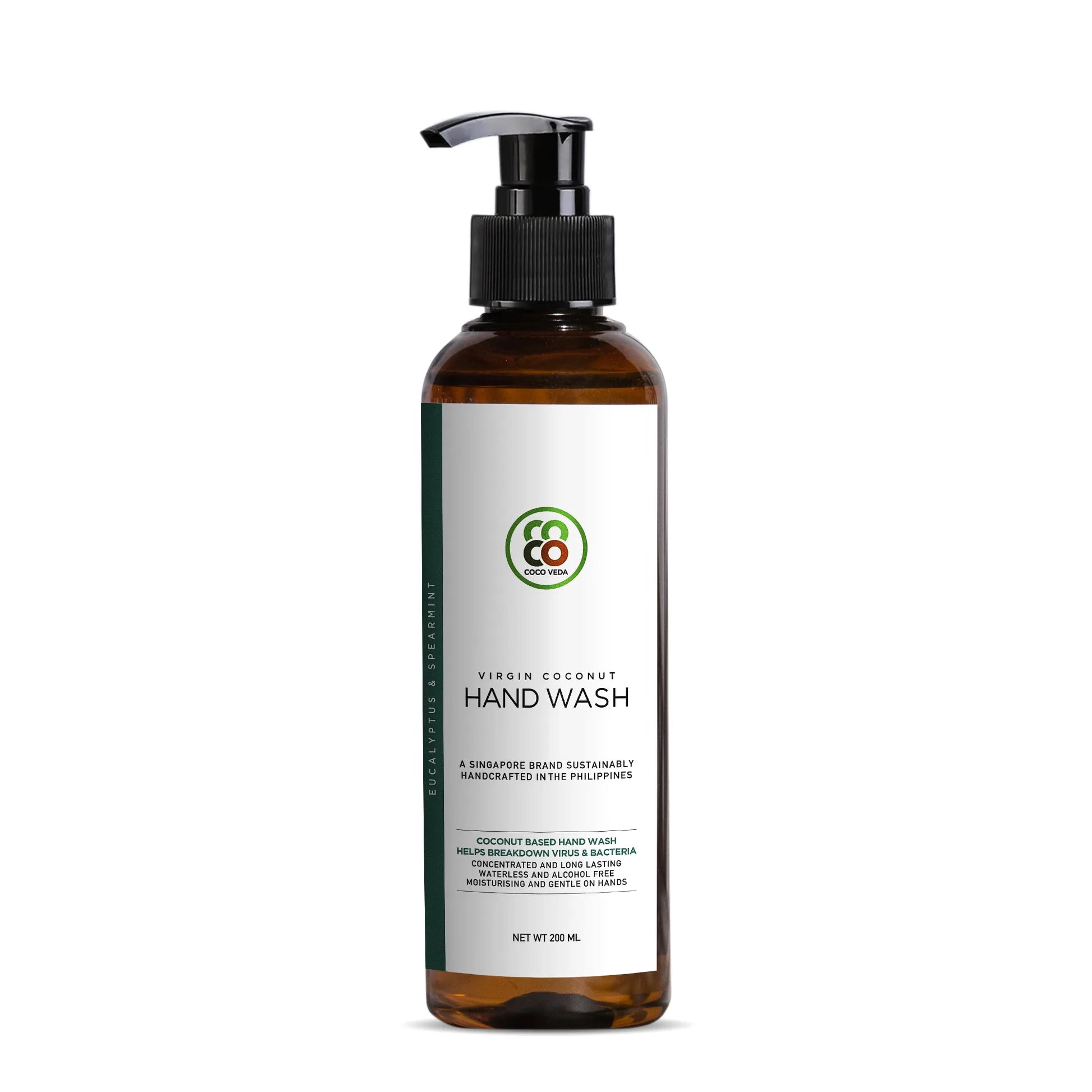 A Coconut Based Waterless, Alcohol Free and Vegan Hand Wash with Essential Oils of Eucalyptus and Spearmint for Daily Use.
