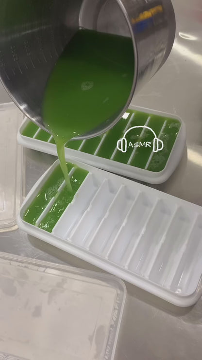 A refreshing bar made with fresh cucumber and aloe vera puree, crafted on a 7 oil blend base that includes sweet almond oil, rice bran oil and shea butter. This bar not only hydrates the skin, it provides deep purifying daily cleansing with green clay that is especially great for combination skin. Scented with Lavender Tea Tree oil that is stimulating yet relaxing.This is a bar that is great for face, which can be used for body as desired.