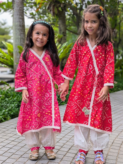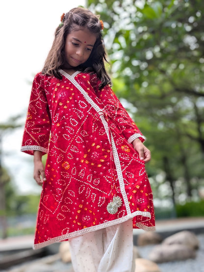 Feel the Elegance with Radha Red Bandhani Angarkha