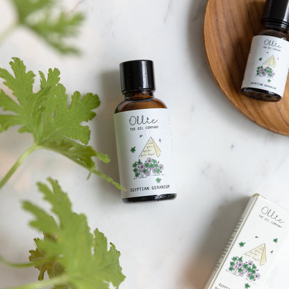 Ollie's Egyptian Geranium Oil is steam distilled from the leaves of the Pelargonium Graveolens or Rose Geranium plant. Famous for its rose, citrus, and minty scent, we source Egyptian Geranium Oil from Egypt, where the botanicals are grown by the river Nile. Sustainability and purity are the hallmarks of Ollie. Our customers are guaranteed to receive only 100% pure, unadulterated Egyptian Geranium essential oil. Every bottle of essential oil is carefully vetted for purity and quality. You are guaranteed a fully authentic aromatherapy experience when you use our geranium oil.